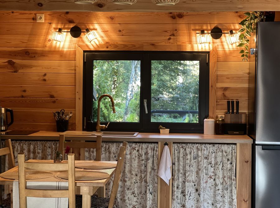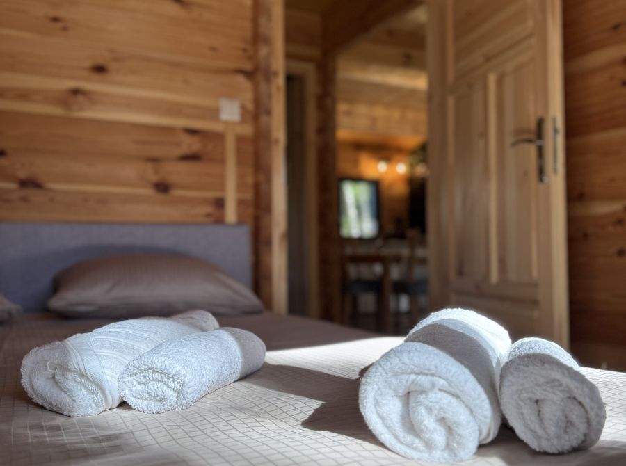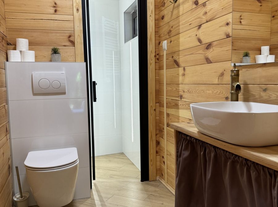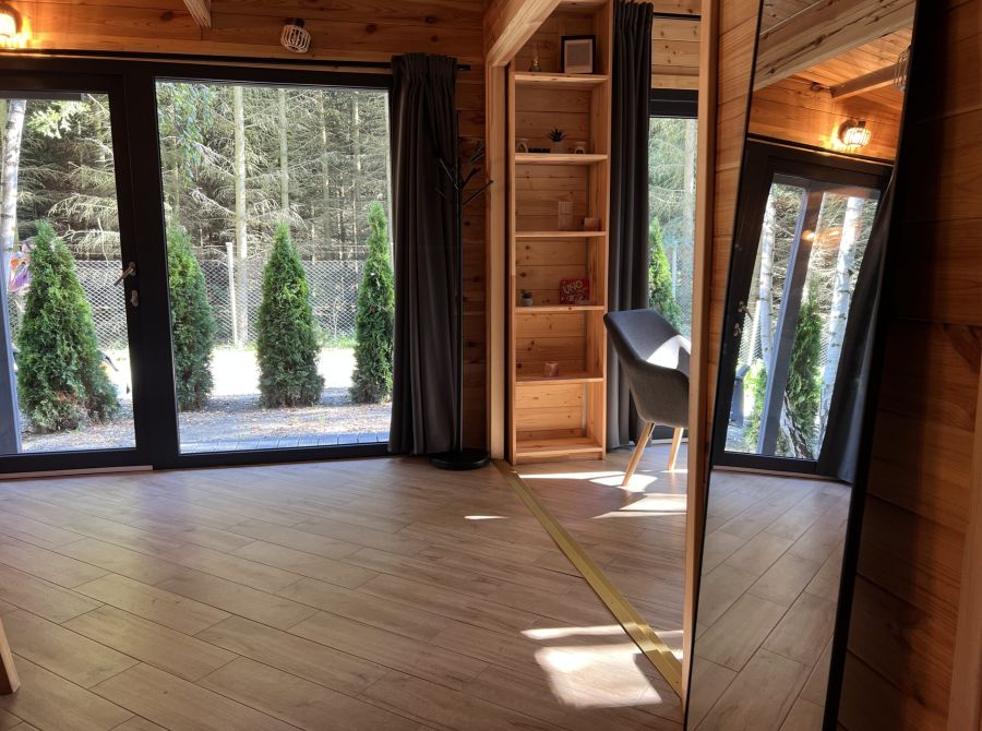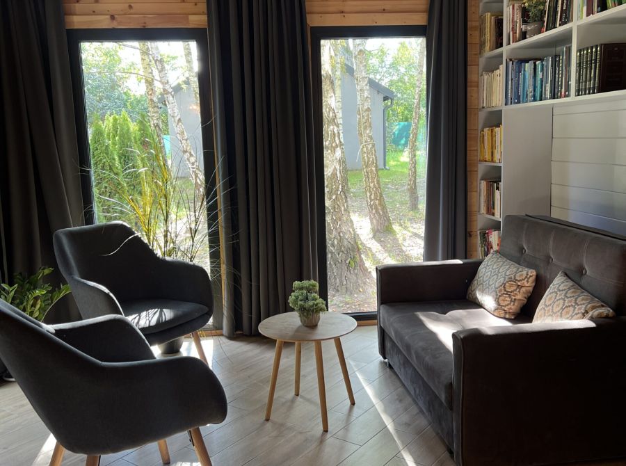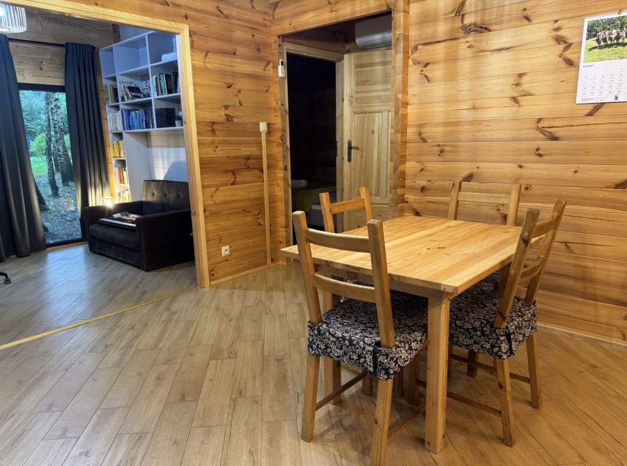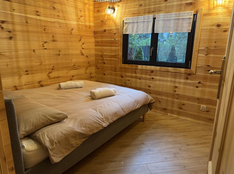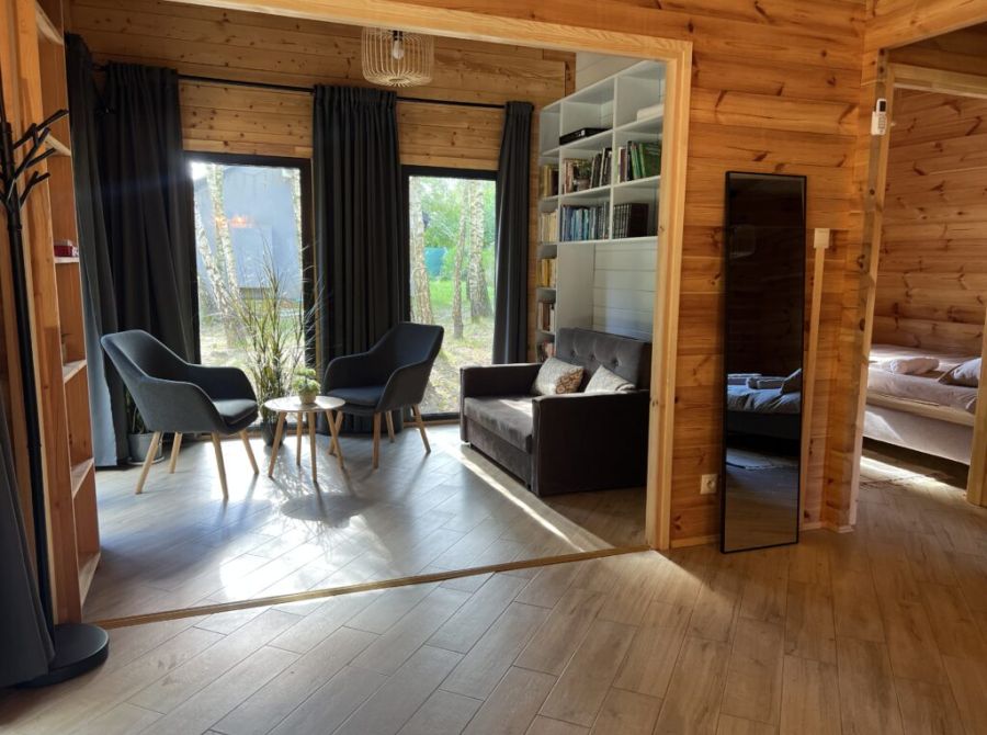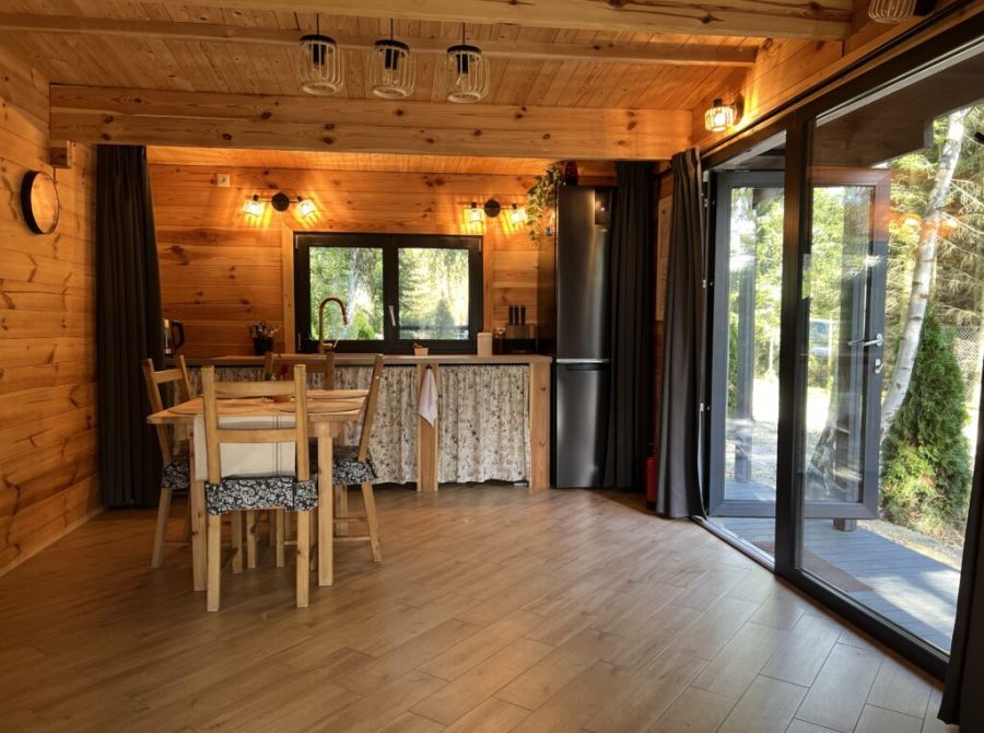 Nowoczesny, całoroczny domek 55 m² położony blisko jeziora Stelchno, w otoczeniu lasu. Komfortowe wnętrze z dwiema sypialniami, salonem z sofą, wyposażoną kuchnią oraz tarasem. Idealny na rodzinny wypoczynek, weekend z przyjaciółmi lub spokojny urlop blisko natury.