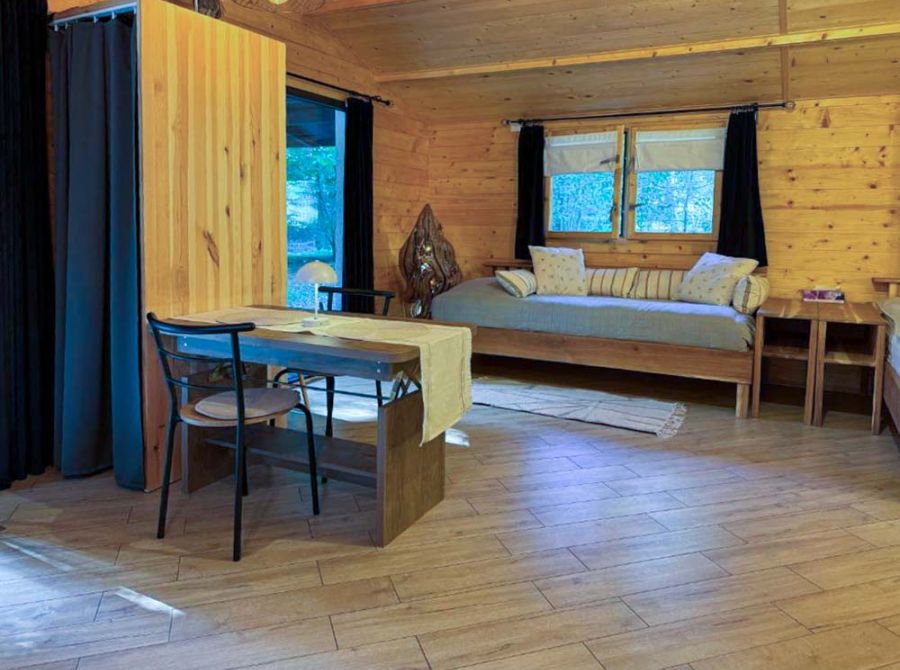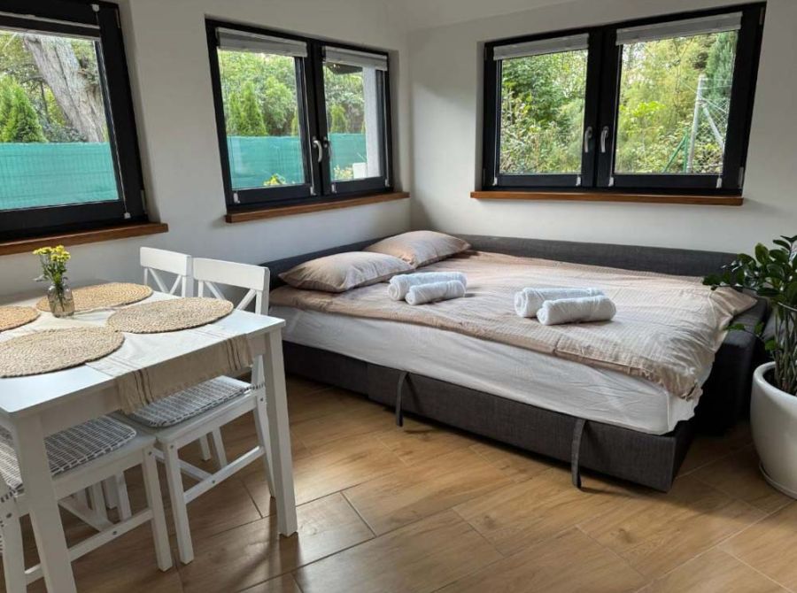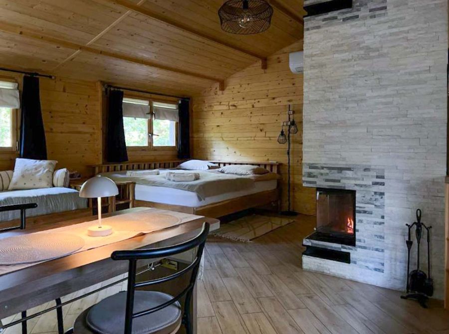 Domek „Sauna w brzozach” to kameralny, całoroczny domek 50 m² położony wśród drzew, z prywatną sauną, kominkiem i tarasem. Idealny dla par, małych rodzin i wszystkich, którzy chcą odpocząć blisko natury.